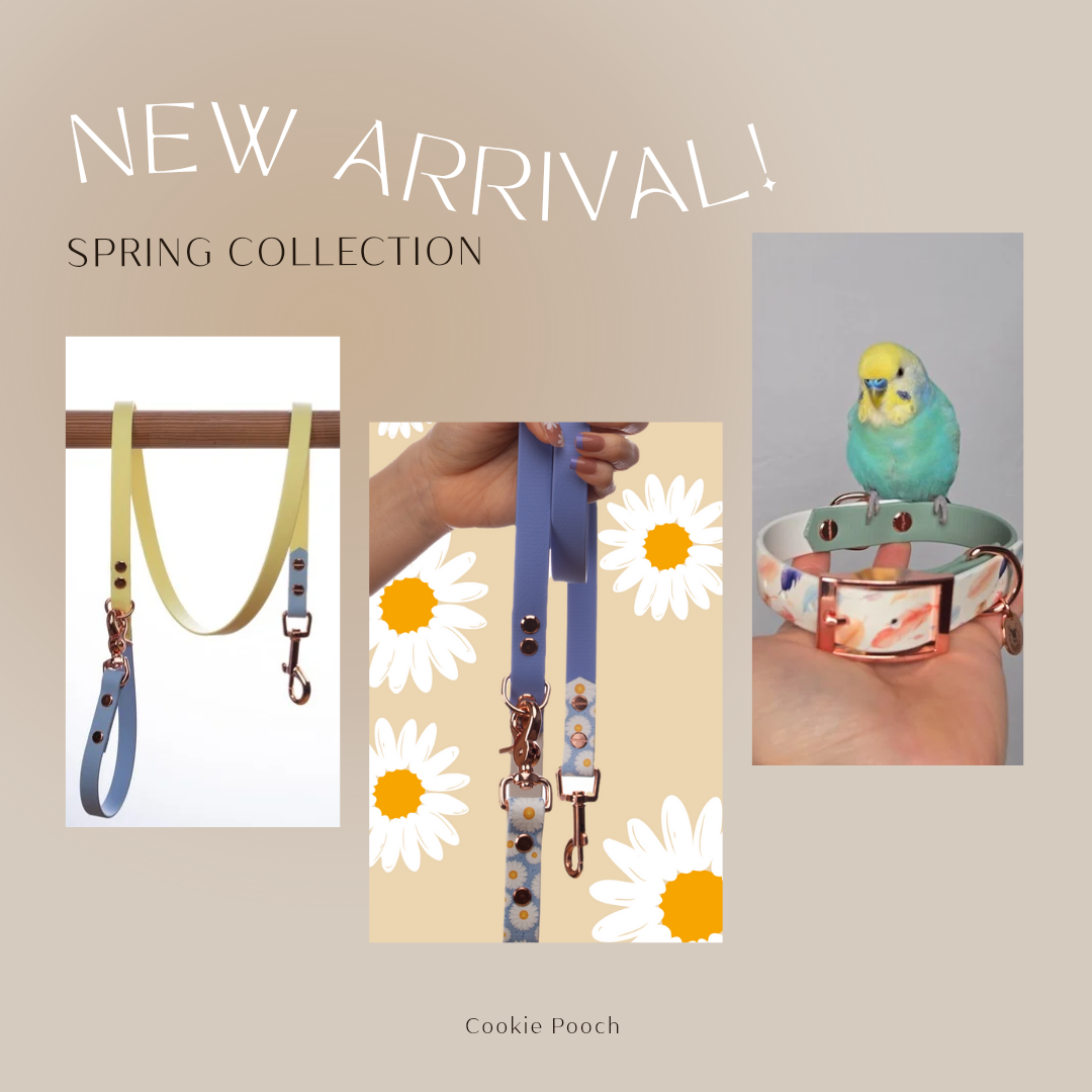 Cookie Pooch Summer コレクション🌻 夏らしいパステルカラーの新色や、防水素材BioThane にプリントが施されたデイジーやフェザーの柄が仲間入り🪶 耐久性も可愛さも兼ね備えた新しいシリーズ。お散歩がもっと楽しくります♡
