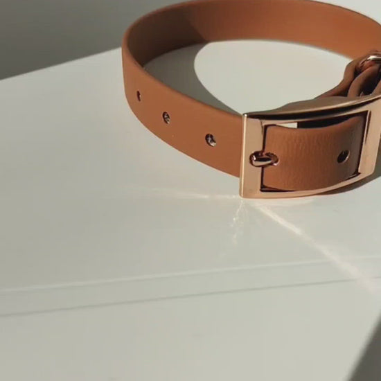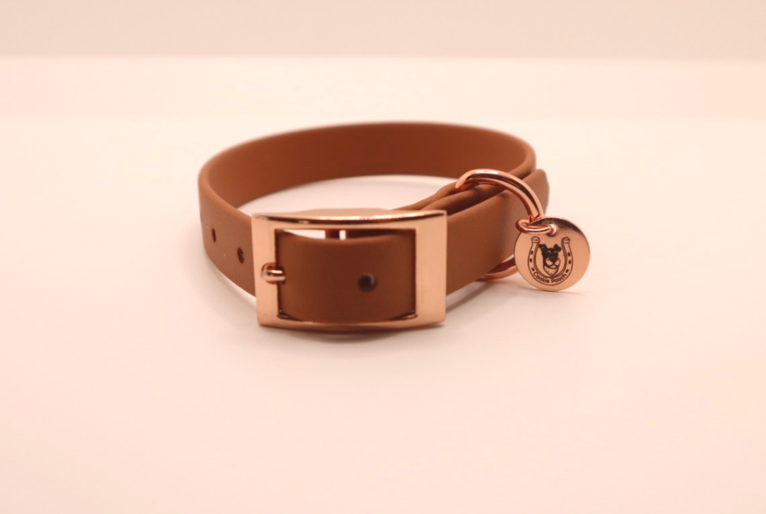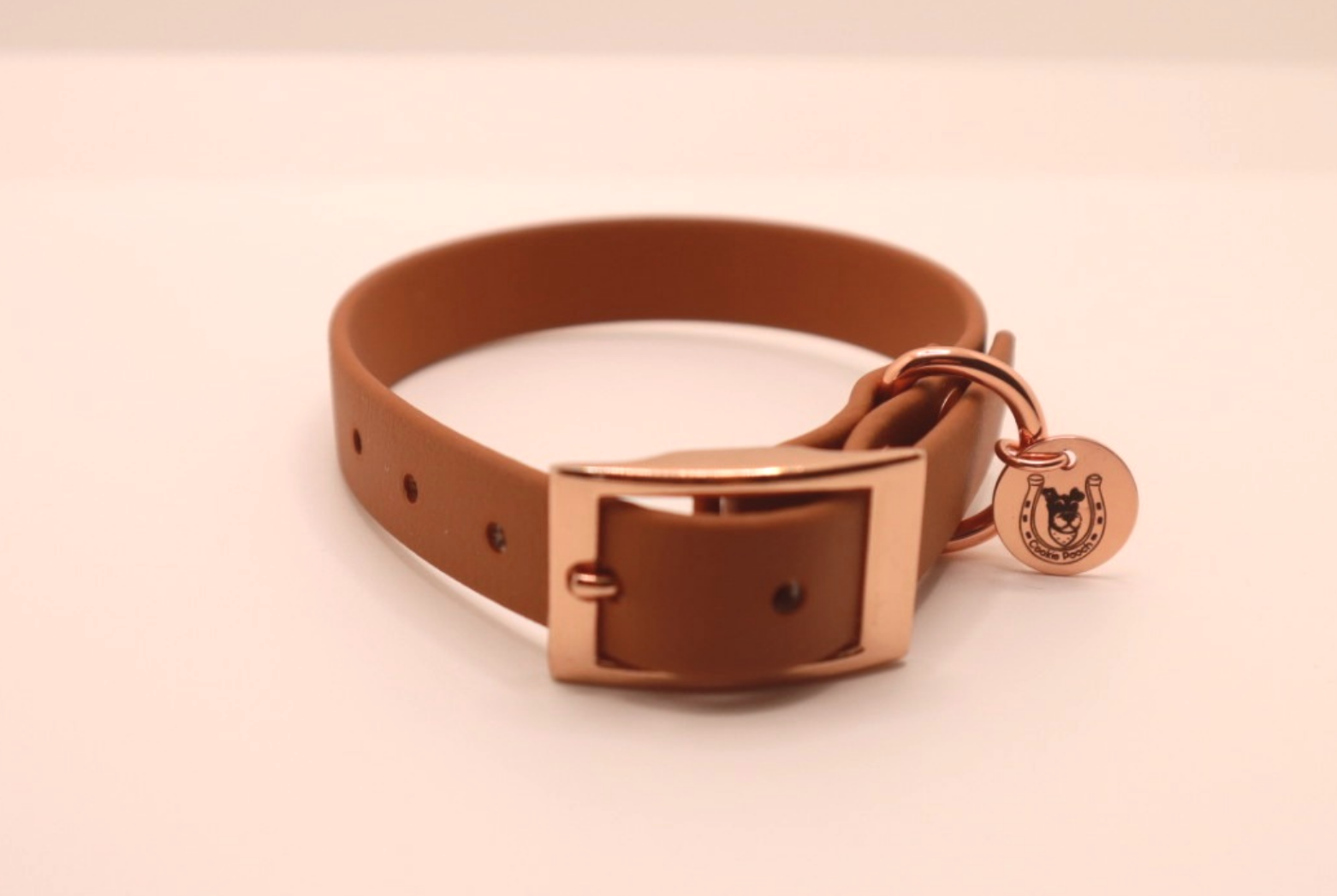 This is an adjustable BioThane dog collar. BioThane is extremely durable, waterproof, stinkproof and therefore headache proof for dog owners. This collar is great for adventurous pups that like to get muddy or go swimming.