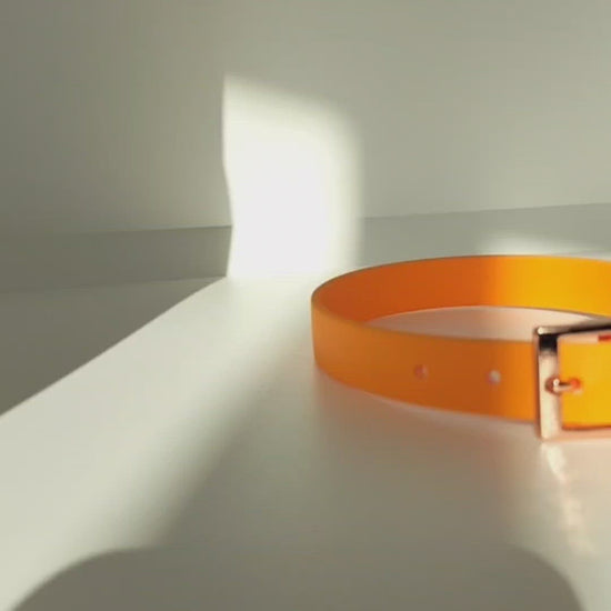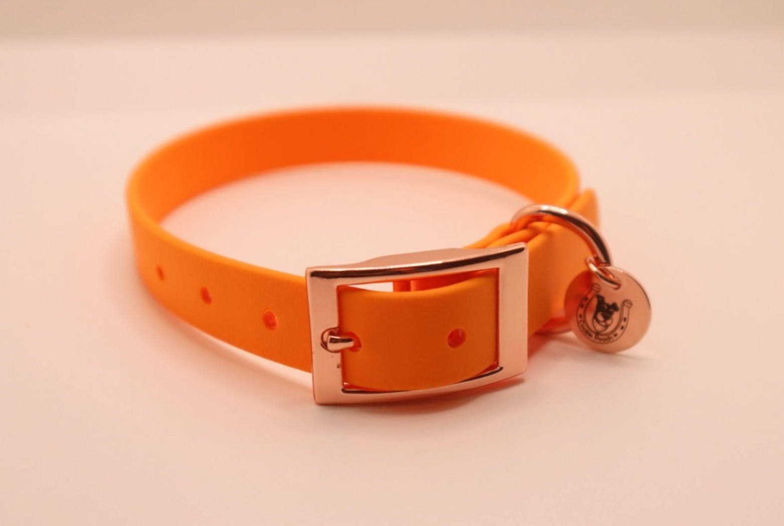 This is an adjustable BioThane dog collar. BioThane is extremely durable, waterproof, stinkproof and therefore headache proof for dog owners. This collar is great for adventurous pups that like to get muddy or go swimming.