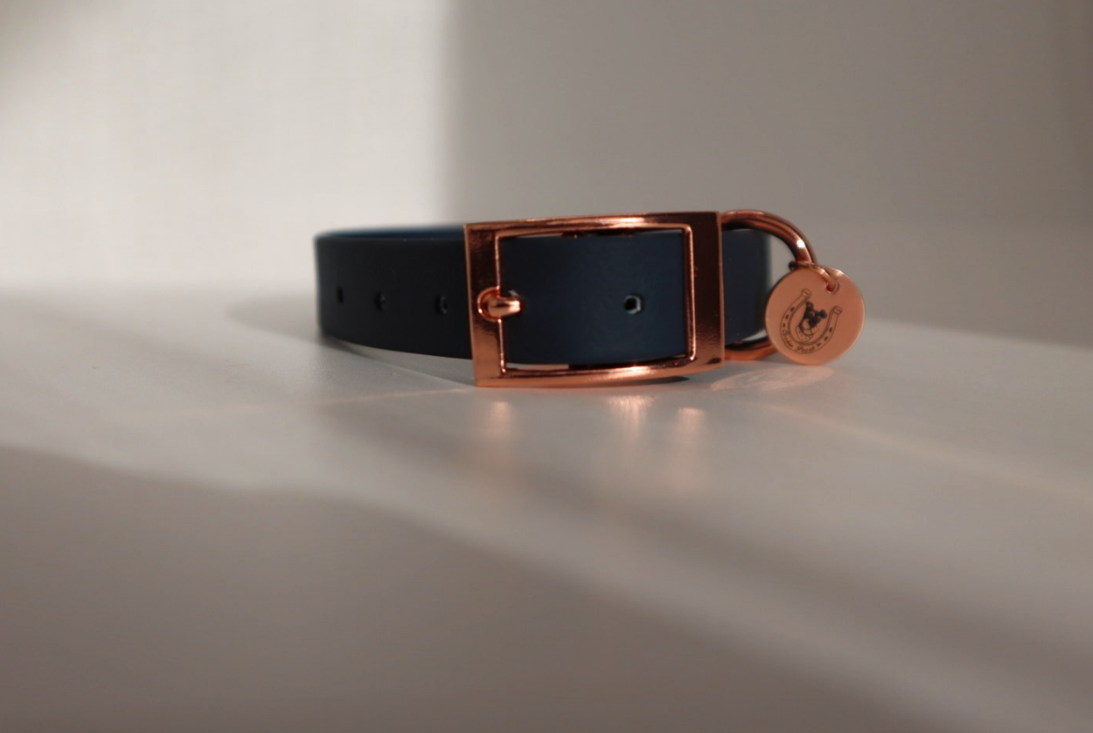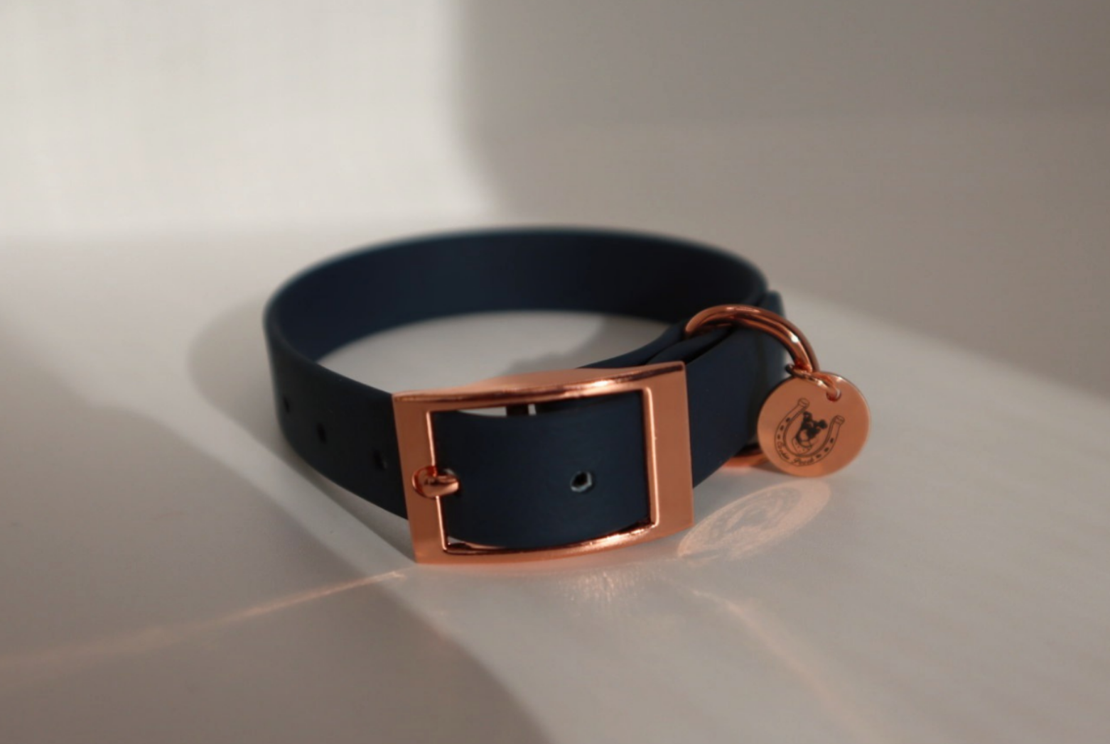This is an adjustable BioThane dog collar. BioThane is extremely durable, waterproof, stinkproof and therefore headache proof for dog owners. This collar is great for adventurous pups that like to get muddy or go swimming.