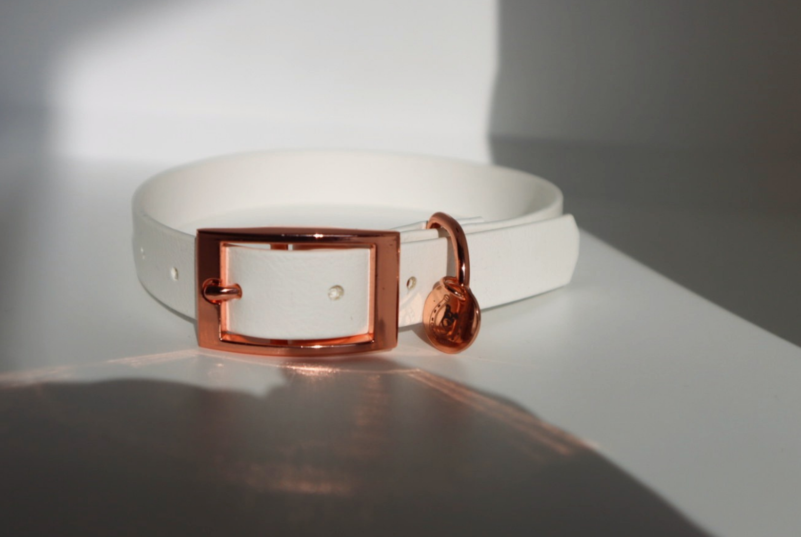 This is an adjustable BioThane dog collar. BioThane is extremely durable, waterproof, stinkproof and therefore headache proof for dog owners. This collar is great for adventurous pups that like to get muddy or go swimming.