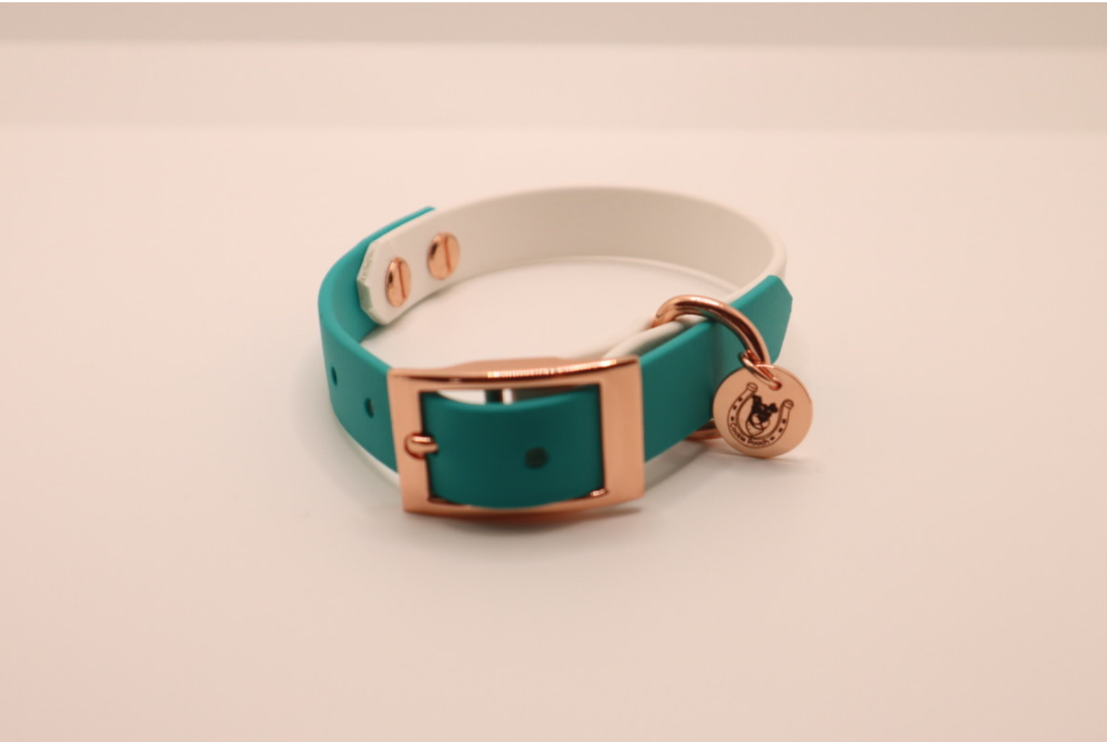 This is an adjustable BioThane dog collar. BioThane is extremely durable, waterproof, stinkproof and therefore headache proof for dog owners. This collar is great for adventurous pups that like to get muddy or go swimming.