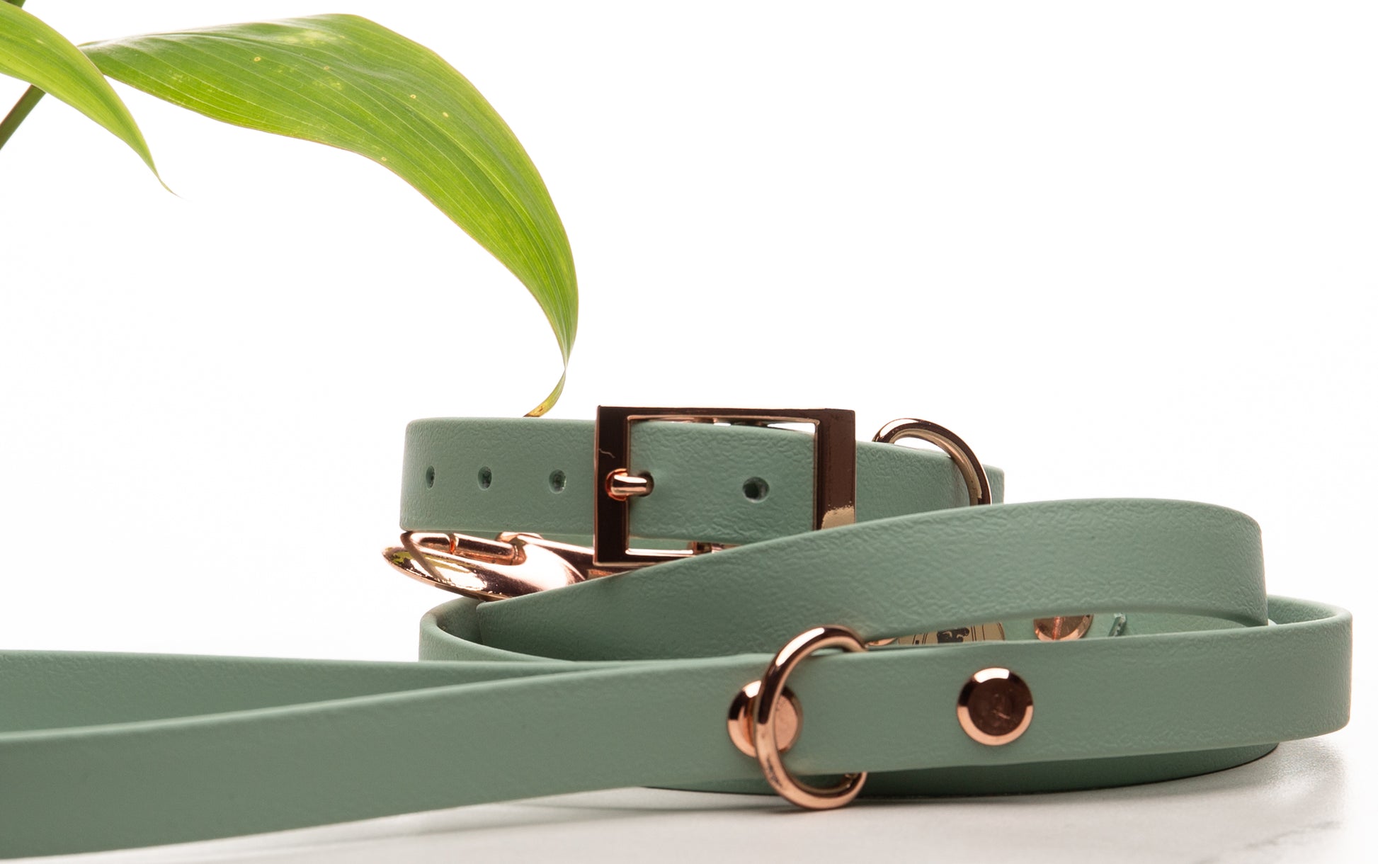 軽くエンボス加工があり、革に近い質感になっており、しなやかでエッジが立っていない為、愛犬にも優しい着け心地です。