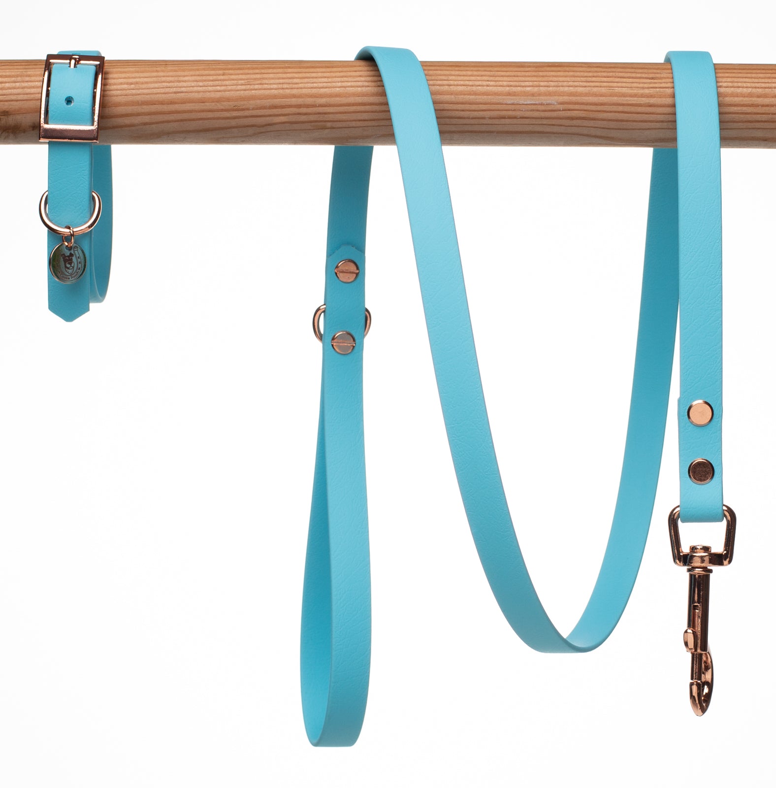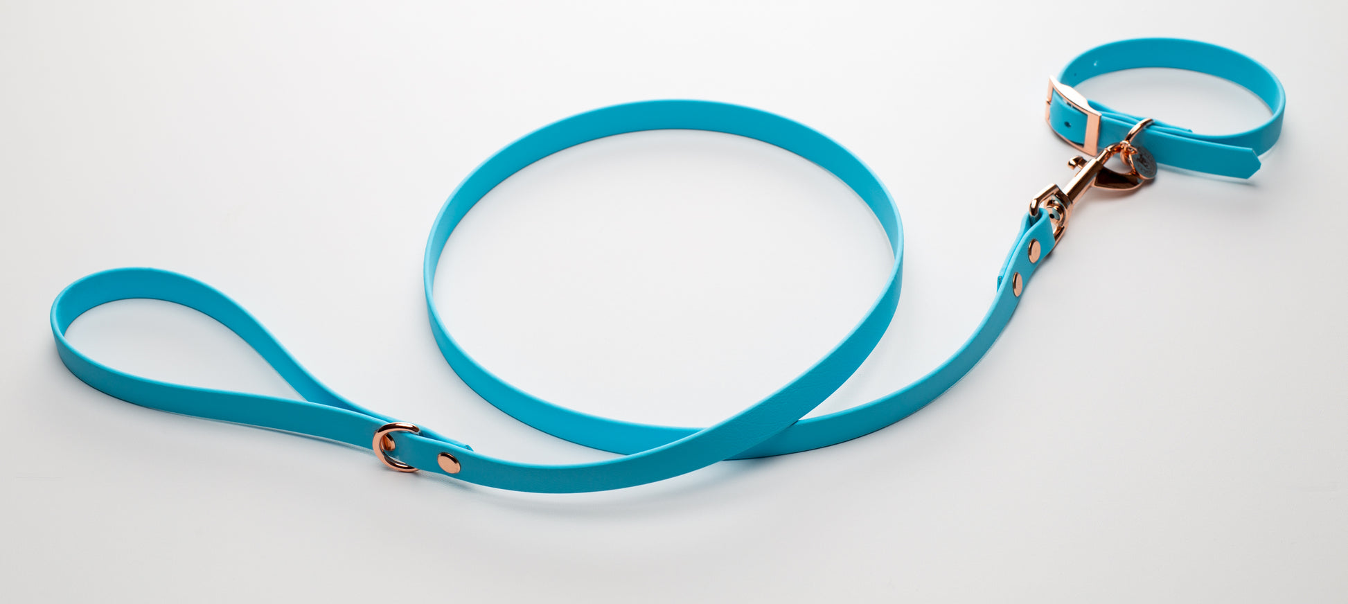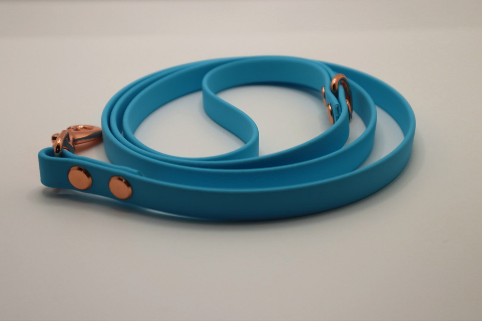 Light Blue BioThane dog lead. BioThane is extremely durable, waterproof, stinkproof and therefore headache proof for dog owners. This lead is great for adventurous pups that like to get muddy or go swimming.