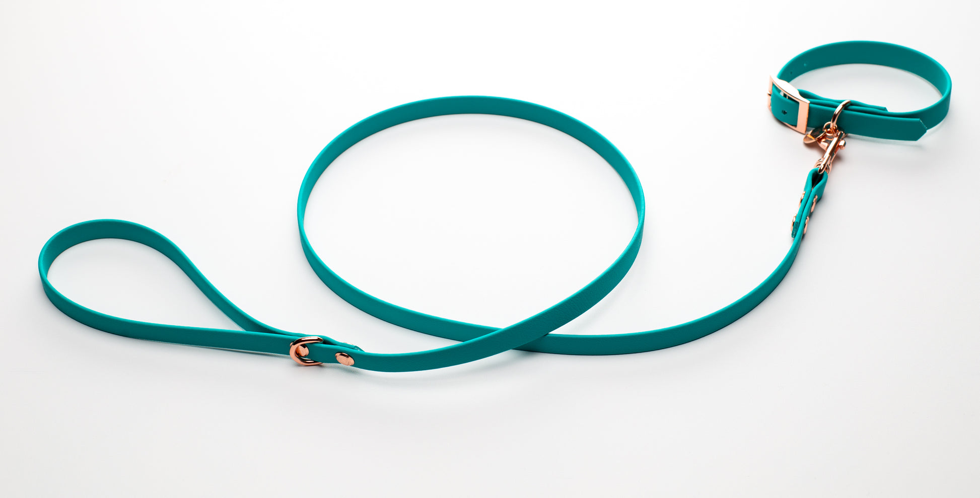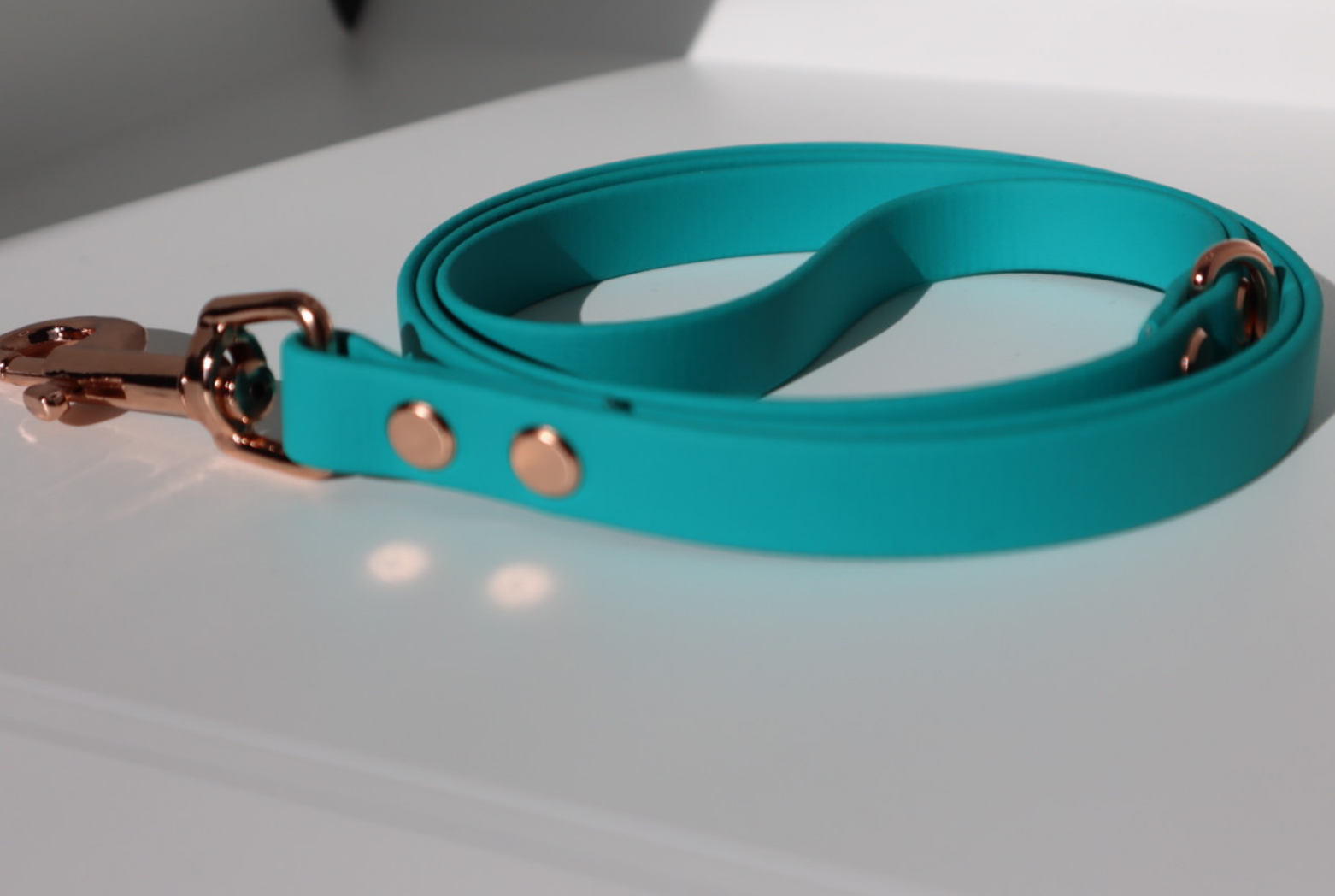 Teal BioThane dog lead. BioThane is extremely durable, waterproof, stinkproof and therefore headache proof for dog owners. This lead is great for adventurous pups that like to get muddy or go swimming.