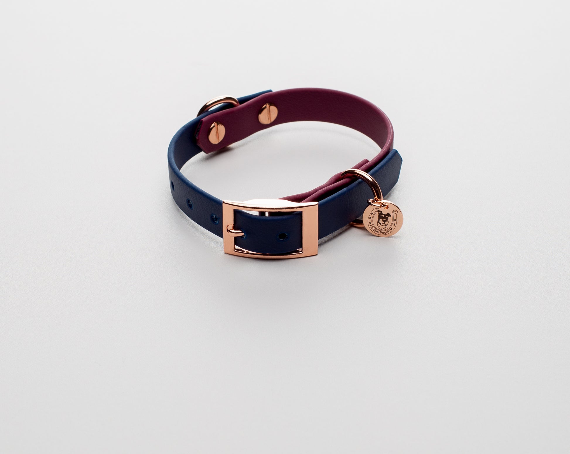Navy×Wine red BioThane dog collar