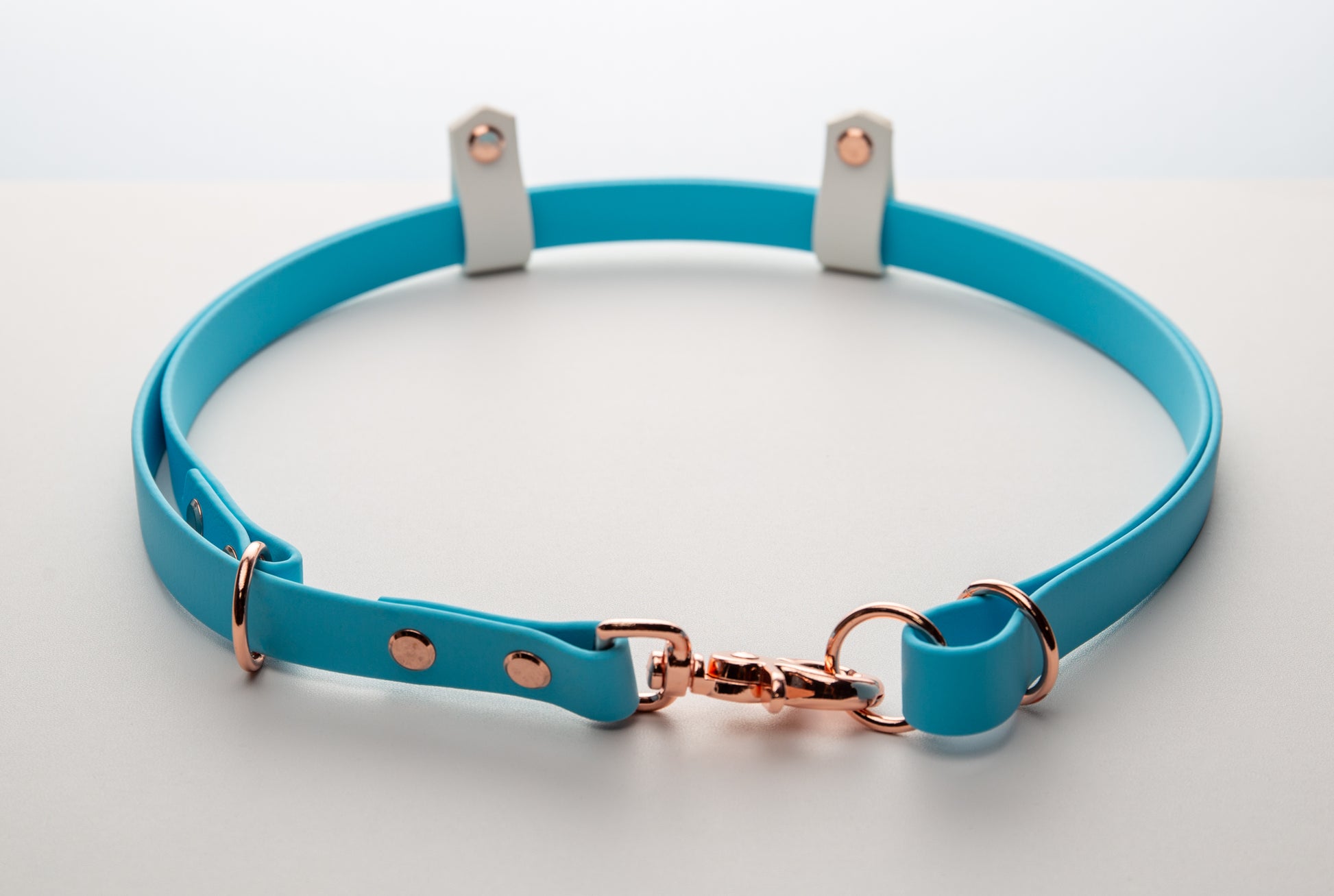 当店の Biothane ハンズフリー リードアダプターは、Cookie Pooch のリードをハンズフリー モードに変換する別のアイテムです。 調節可能なので、腰に巻いたり、斜めがけしたりできます。