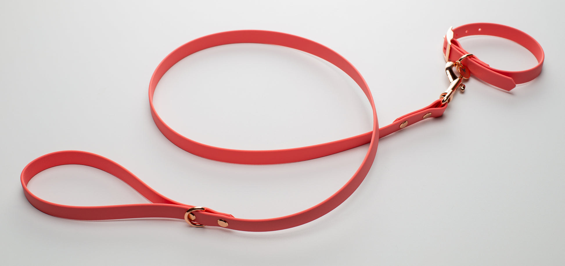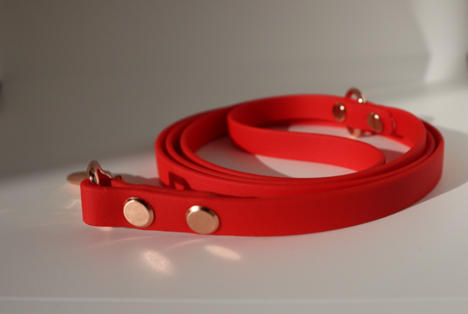 Red BioThane dog lead. BioThane is extremely durable, waterproof, stinkproof and therefore headache proof for dog owners. This lead is great for adventurous pups that like to get muddy or go swimming.