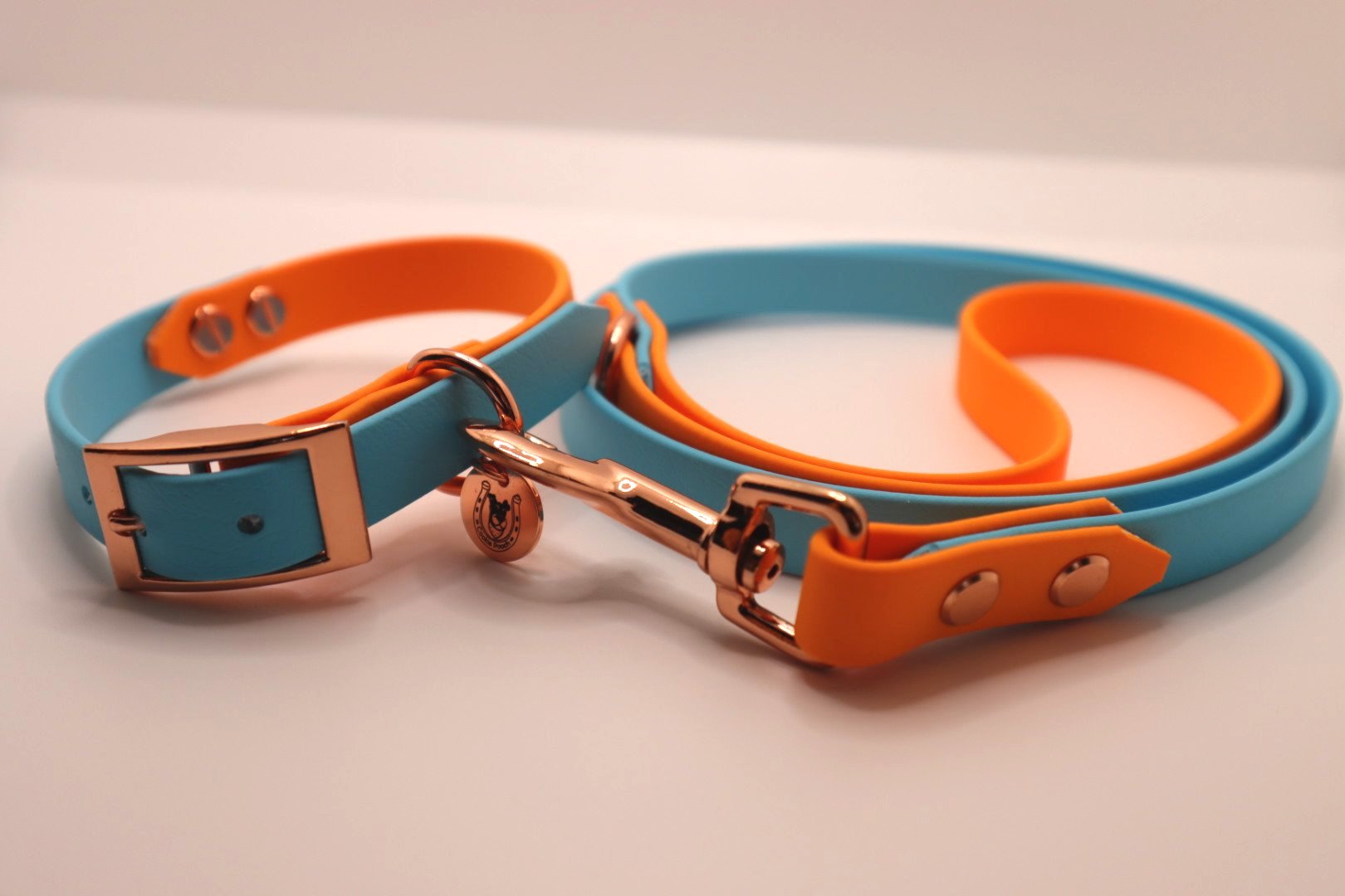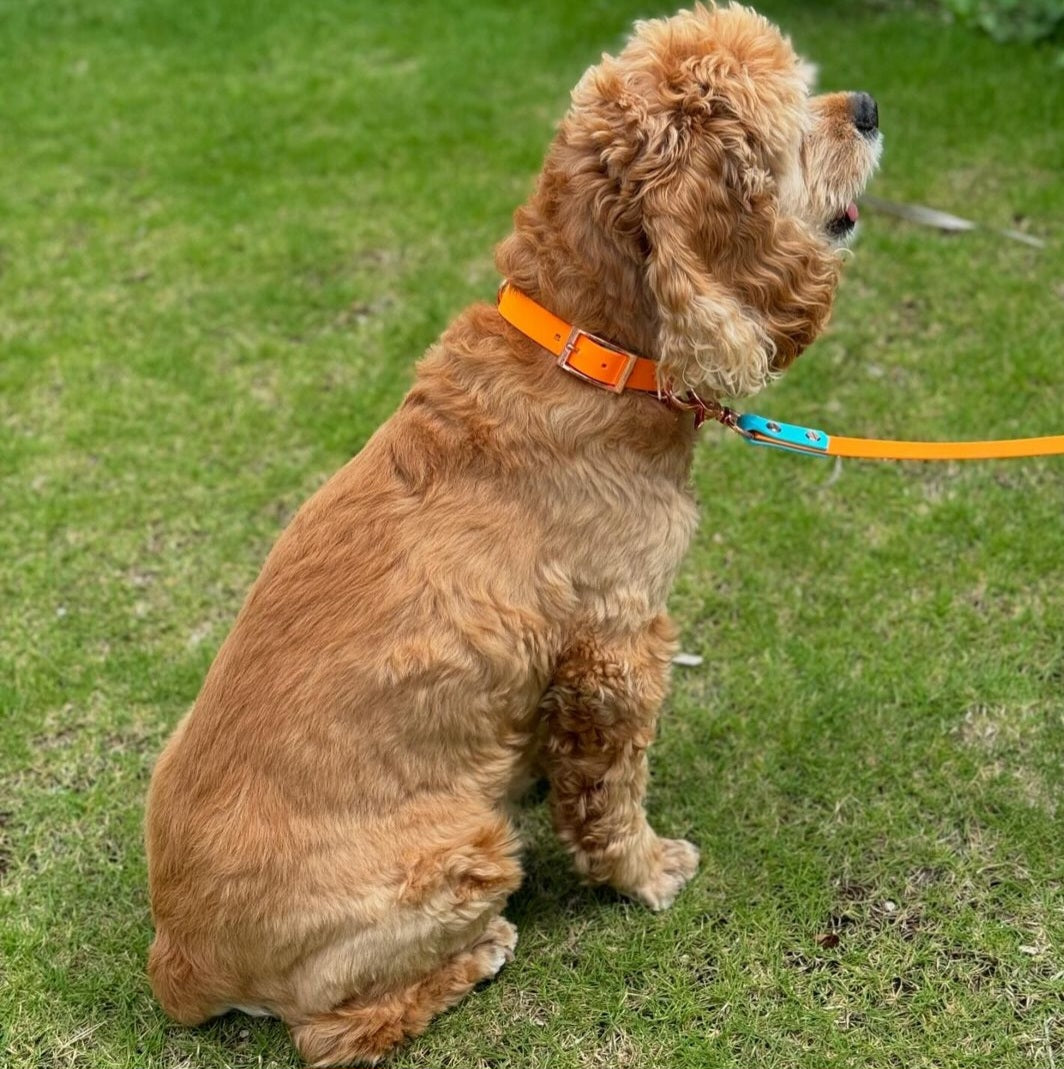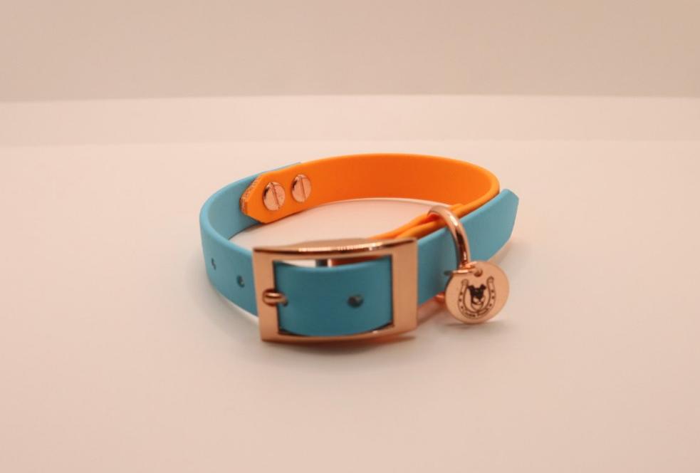 Light Blue×Orange BioThane dog collar
