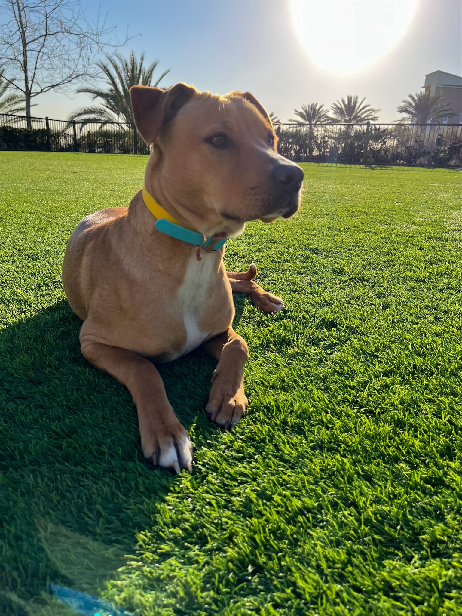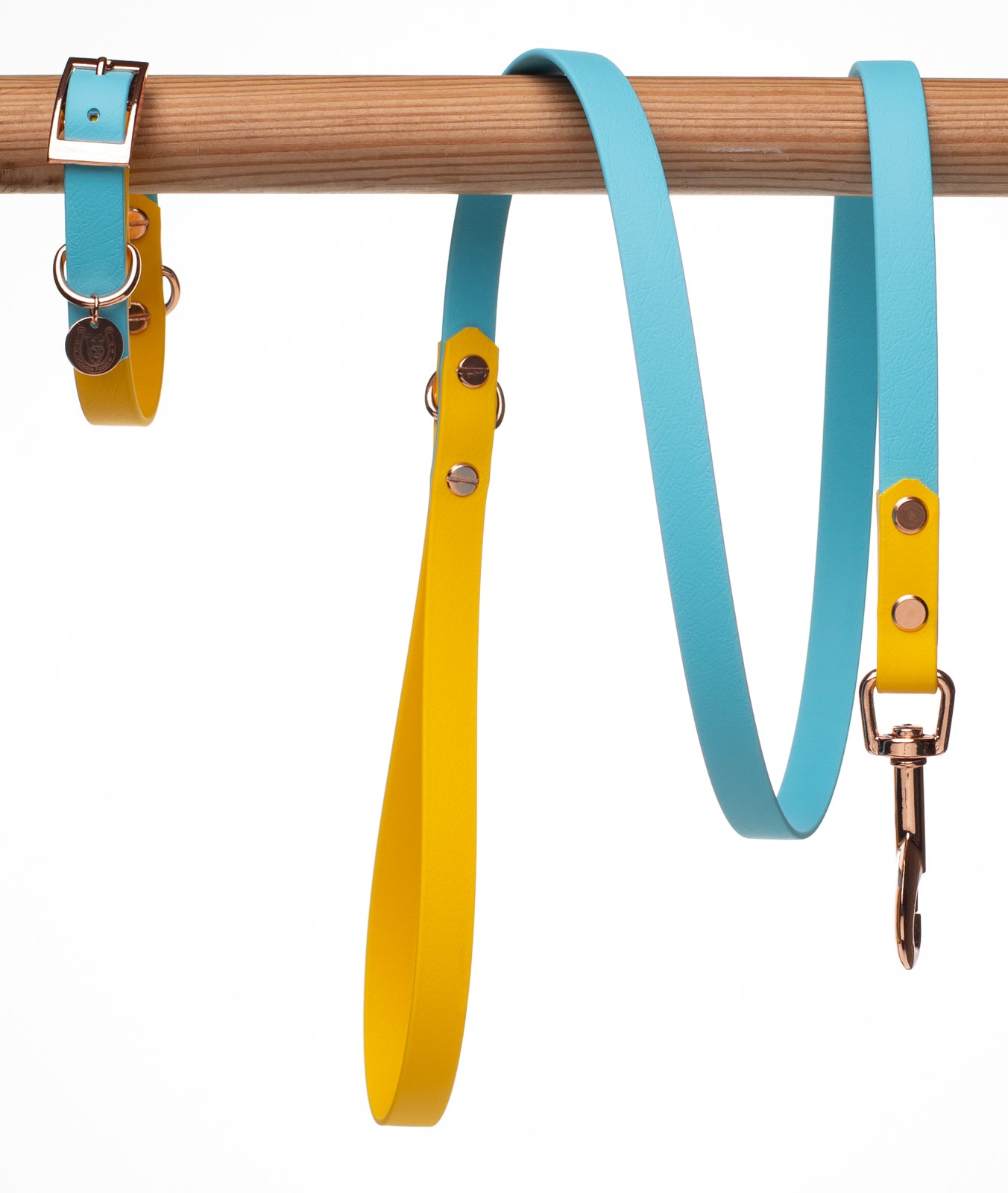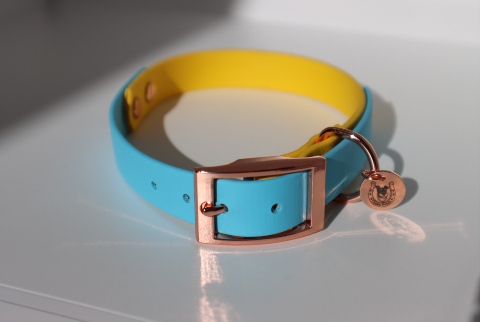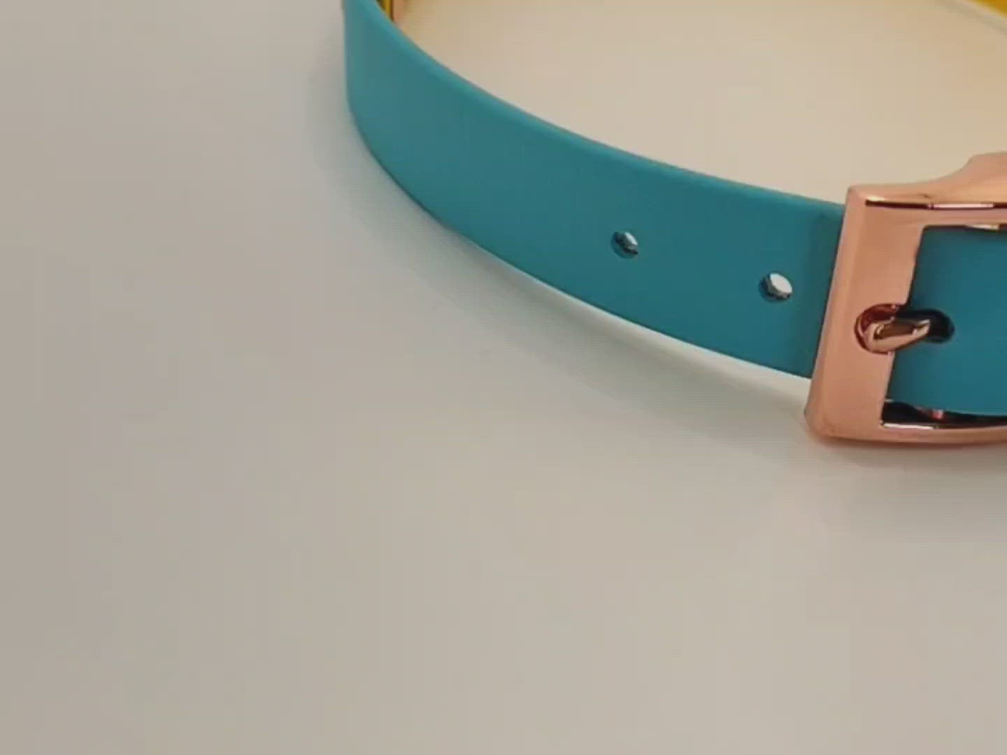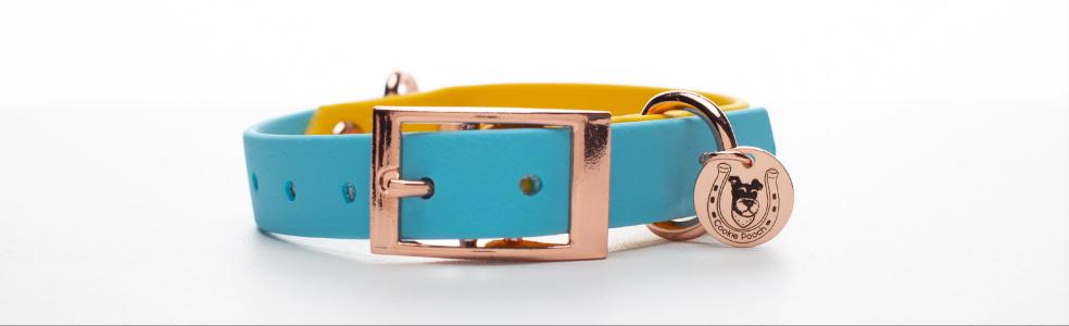 Baby Blue ×Yellow BioThane® dog collar.