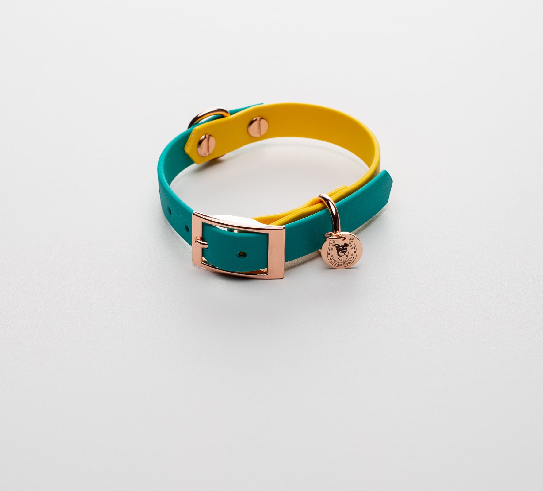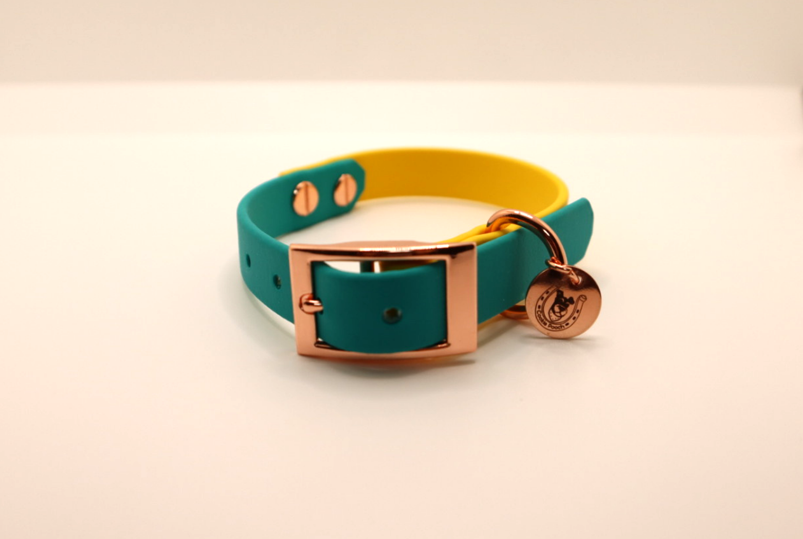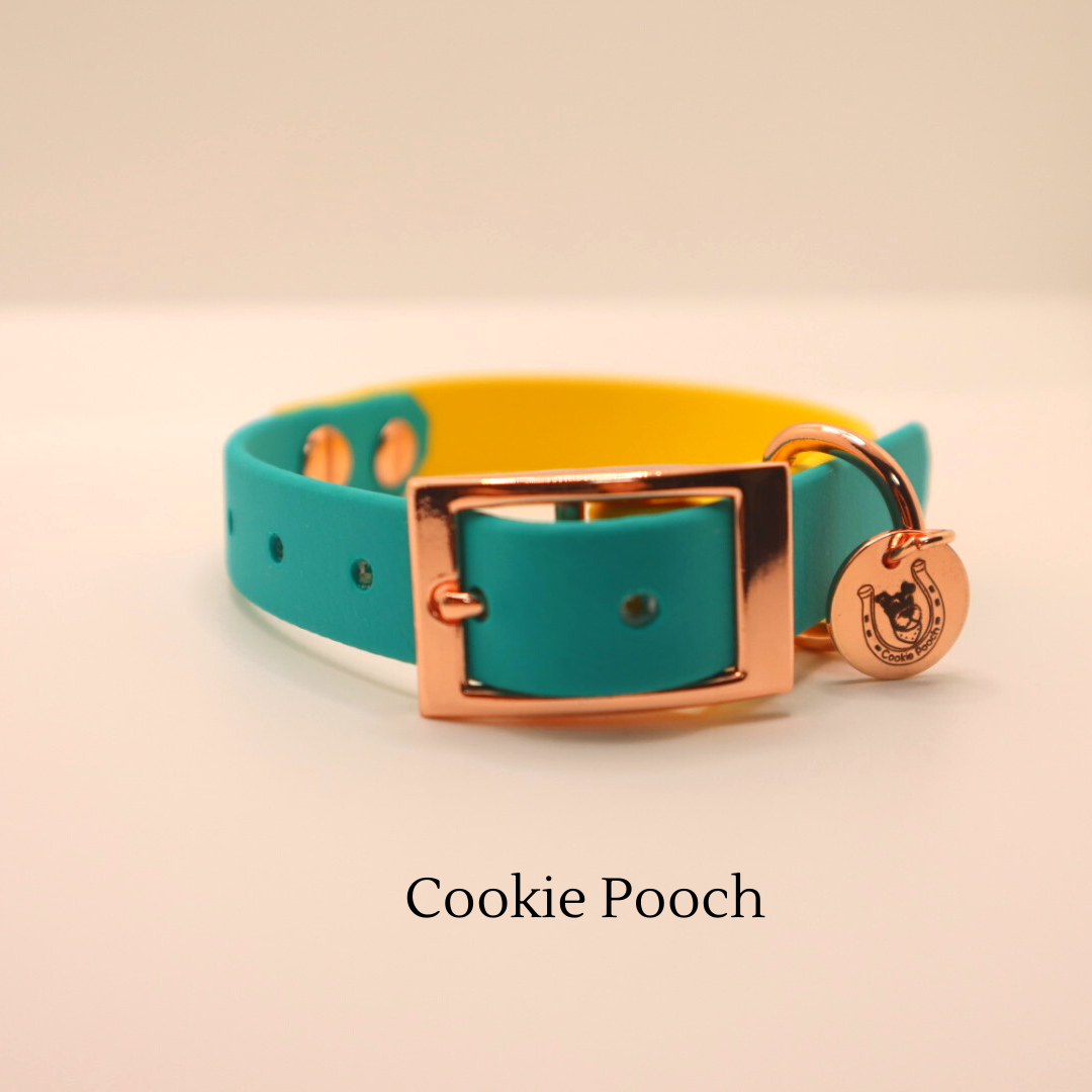 This is an adjustable BioThane dog collar. BioThane is extremely durable, waterproof, stinkproof and therefore headache proof for dog owners. This collar is great for adventurous pups that like to get muddy or go swimming.